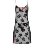La collezione Karonin Dubarry è un set composto da una sensuale camicia da notte e un perizoma nero abbinato. Il set è realizzato in morbido pizzo traforato ed è inoltre decorato con un sottile nastro rosa cipria legato al busto. Una combinazione così contrastante di rosa dolce e nero feroce fa sì che l’outfit aggiunga coraggio e fiducia in se stessi. A sua volta, il materiale del set garantisce che l’utilizzatore si senta il più bene possibile nel proprio corpo. Il pizzo è realizzato in poliammide piacevole al tatto, che non si graffia e si adatta bene alla forma della figura femminile.